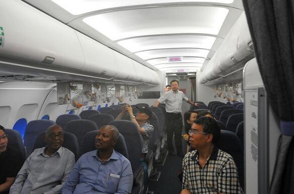 随后,杨征副院长、孙暄副院长陪同阿卜杜拉·米吉勒大使一行参观了学院航服实训中心、乘务训练中心、飞机维修实训基地等场馆里的各类设施,重点对A330静态模拟舱、A320动态模拟舱、恒温训练泳池、波音737BAe146R44直升机等实训设施进行了实地观摩。在动态舱中,来宾对飞行颠簸、烟雾报警、客舱失密等突发事件处置过程进行了深度体验。阿卜杜拉·米吉勒大使一行对于各类丰富的实训设备展示频频点头赞许。