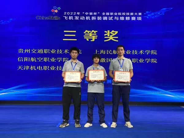 8月26日至29日,2022年“中银杯”全国职业院校学生技能大赛“飞机发动机拆装调试与维修赛项”在湖南株洲举行。经过激烈角逐,由民航维修学院学生王泽辉、邱梦莹、宋俊杰三位学生组成的上海市代表队荣获团体三等奖,展现了民航维修学子的风采。